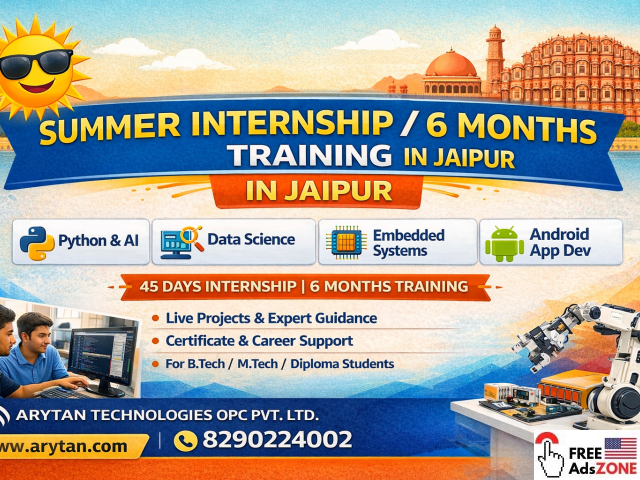 Arytan Technologies OPC Pvt. Ltd., Jaipur is offering Summer Internship (45 Days) and 6 Months Industrial Training for B.Tech / M.Tech / MSc / Diploma Engineering students. This program is designed to provide hands-on practical training, real-time projects, and industry-oriented skills under expert guidance.