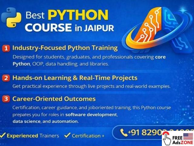Best Python Course in Jaipur offers professional coaching and practical training for students and working professionals who want to build strong programming skills. These Python classes focus on core concepts, logical thinking, and hands-on practice, making learning easy and effective. With expert guidance, students gain real-time coding experience suitable for today’s IT requirements.